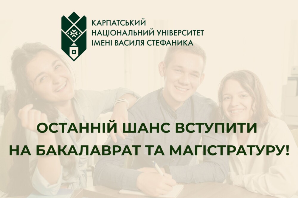 Додатковий набір 2025 на бакалаврат і магістратуру у Карпатському національному університеті імені Василя Стефаника! Важливо: вступ відбувається лише на платну форму навчання (за кошти фізичних та/або юридичних осіб).  Ключові дати: • Прийом заяв та документів: 15 – 19 вересня • Реєстрація Читати далі